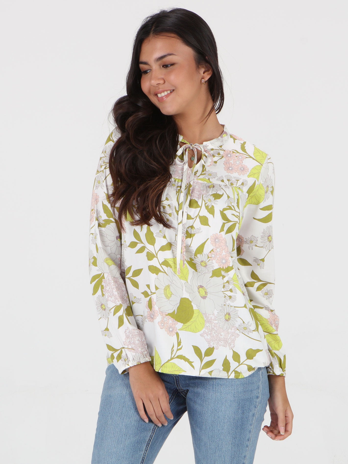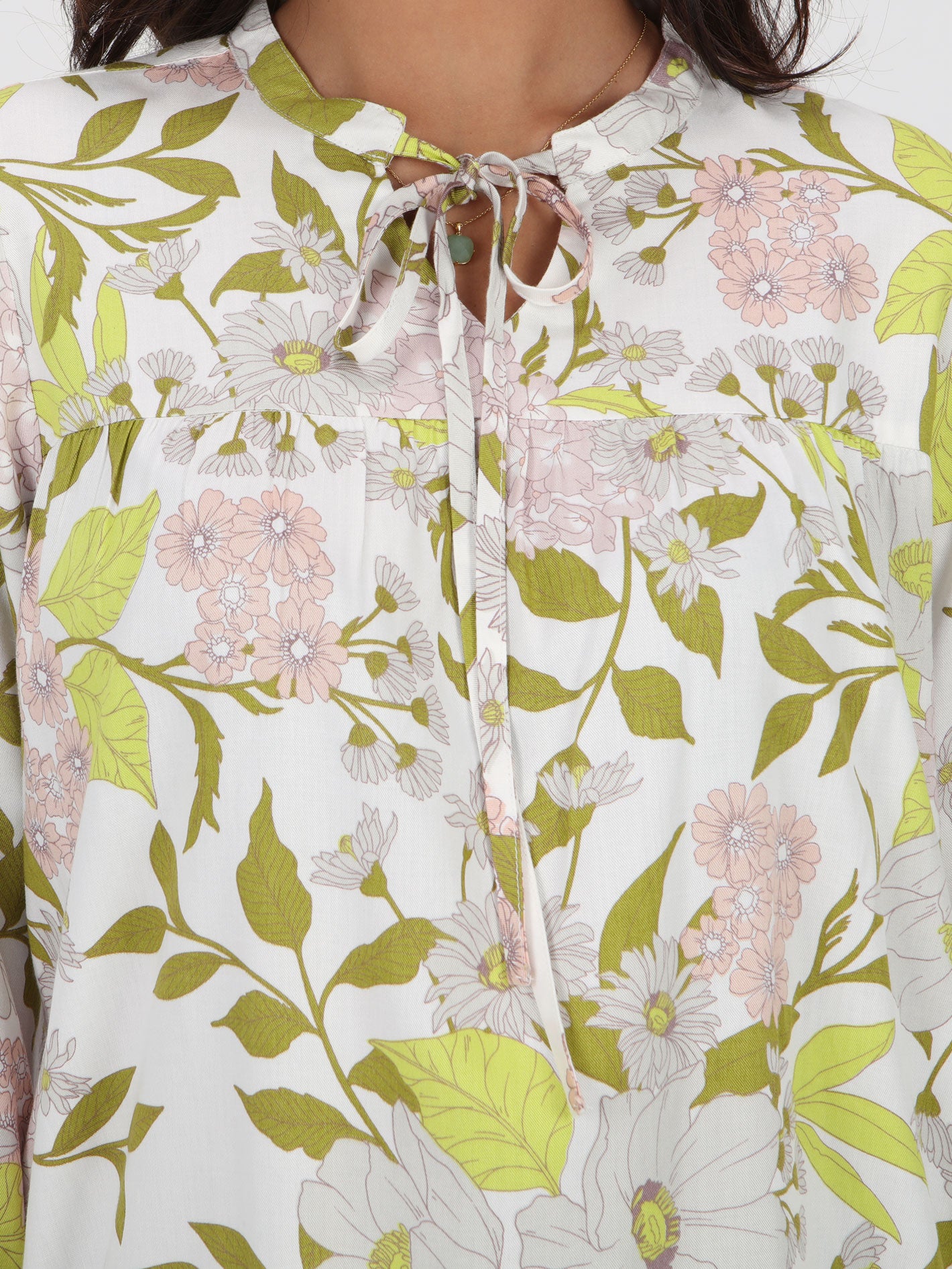 Blouse motif lengan panjang detail tali